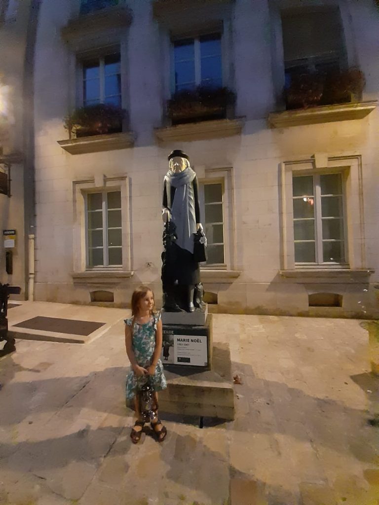 Et c’est plongées dans ce clair obscur que nous allons découvrir les beautés de ces vieilles pierres chargées d’histoire que nous raconte avec énergie et humour notre guide. Junior boit ses paroles comme du petit lait, clou de la soirée l’entrée dans la cathédrale ouverte exceptionnellement pour nous. Junior en reste bouche bée. A la sortie nous nous faufilons entre les maisons à colombage jusqu’à la Tour de l’horloge moins ancienne que celle de Rouen mais tout aussi imposante. Un clin d’oeil à Cadet Rousselle dont on n’apprend plus la chanson dans les écoles. Et, c’est  du fleuve qui a fait sa richesse qu‘on profitera d’un ultime point de vue éblouissant avec son alignement de monuments majestueux entre cathédrale et abbaye. Retour à l’hôtel à 2 pas pour tomber dans les bras de Morphée.