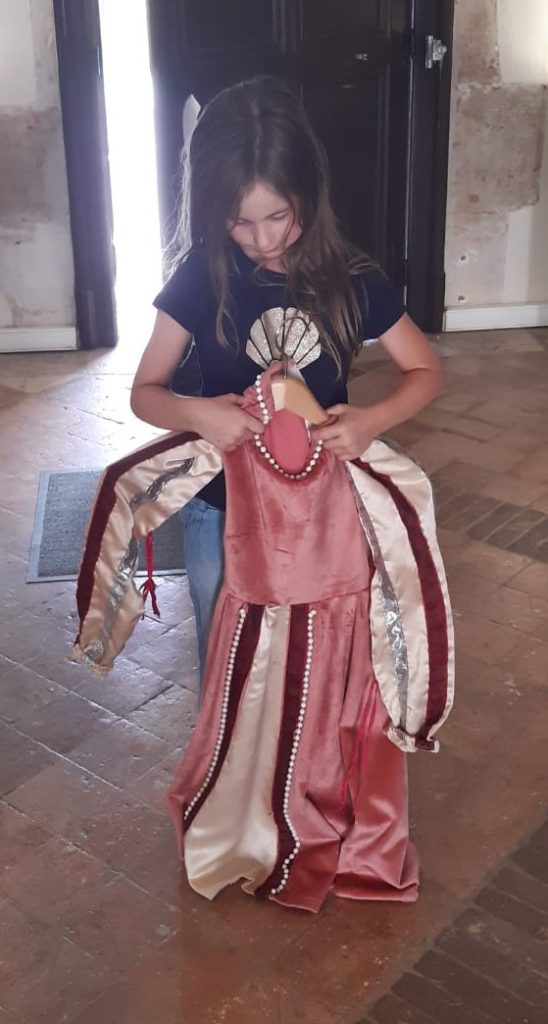 Changement d’ambiance au  Château d’Ancy-le-Franc, un superbe exemple d’ architecture Renaissance. L’entrée en matière est bluffante; nous tombons directement sur un portant croulant sous les costumes d’époque à enfiler gracieusement pour les enfants et ce, avant les caisses. L’inverse du supermarché avec les bonbons. Nous partons à la recherche d’une couronne dissimulée dans chacune des salles richement décorées et meublées sous des plafonds à caissons. Ce palais de la Renaissance Italienne en Bourgogne, signé par Serlio, un architecte italien, rappelle le temps où les rois de France séjournaient au palais d’Ancy-le-Franc! Dehors on profite du parc à l’anglaise doté d’une petite « folie » et des jardins à la française. Un cadre idéal pour les concerts et autres évènements qui s’y déroulent.
