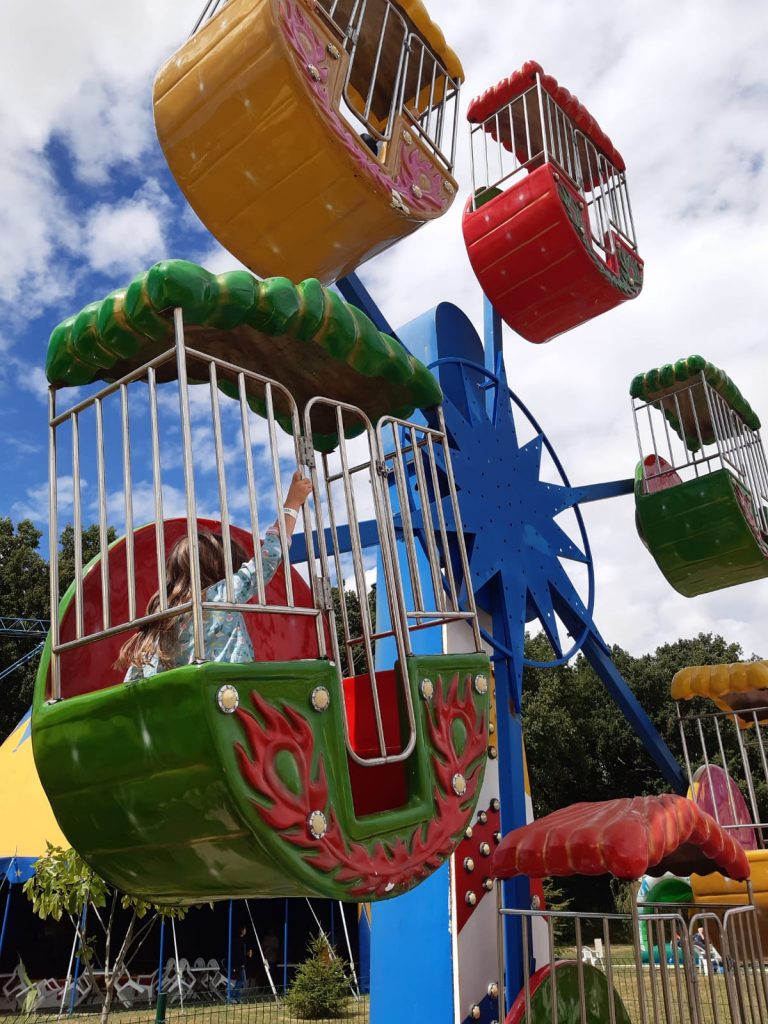 Enfin, nous allons clore notre périple sous le chapiteau de Chapi Parc. Ce Parc de loisirs star à Piffonds combine un cirque familial de 300 places, complètement atypique et propose outre ses spectacles les attractions d’un parc, un paradis pour enfants ! Le couple fondateur n’étant convaincu ni par le cirque traditionnel, ni par le contemporain, a crée  sa propre marque. Ils ont démarré comme cirque itinérant puis se sont  sédentarisés sur un terrain privé qui leur appartenait. C ‘est Stéphane le clown co fondateur avec Claire qui met tout en scène. Et Tino l‘un de ses petits fils qui fait un travail d’ équilibriste. Les acrobates, les clowns et le jongleur, vont éblouir junior sage comme une image sur son siège, elle va en prendre plein les mirettes et ne pas perdre une miette de la « plaine » , l’aire de jeux extérieureoù, surexcitée, elle veut tout tester :  (trampolines, structures gonflables, petits manèges, pistes de karting, jeux en bois…) Autant vous dire qu’elle se régalera encore plus d’une fois comme une lionne dans l’Yonne!