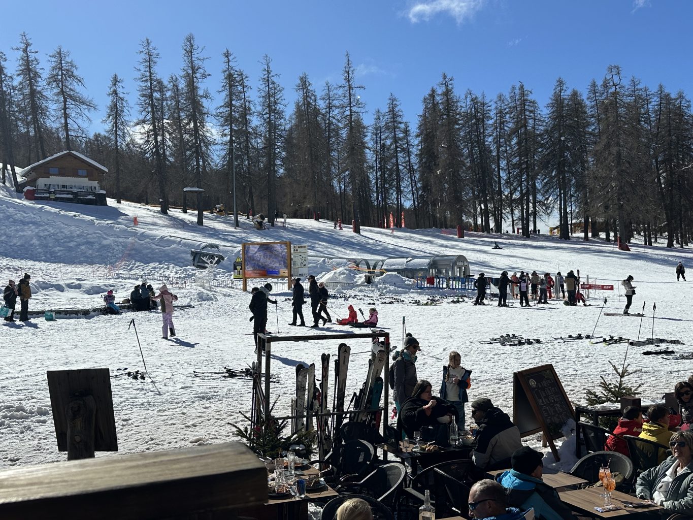 Lorsque l’on voit l’animation qu’il y a sur la place du village et même sur les hauteurs avec les différentes activités mises en place on comprend mieux que, dès les premières heures de la matinée et en début d’après-midi, les parents n’arrivent pas à tenir en place leurs enfants qui trépignent d’impatience et qui n’ont qu’une seule idée en tête : skier, jouer, et surtout s’éclater.